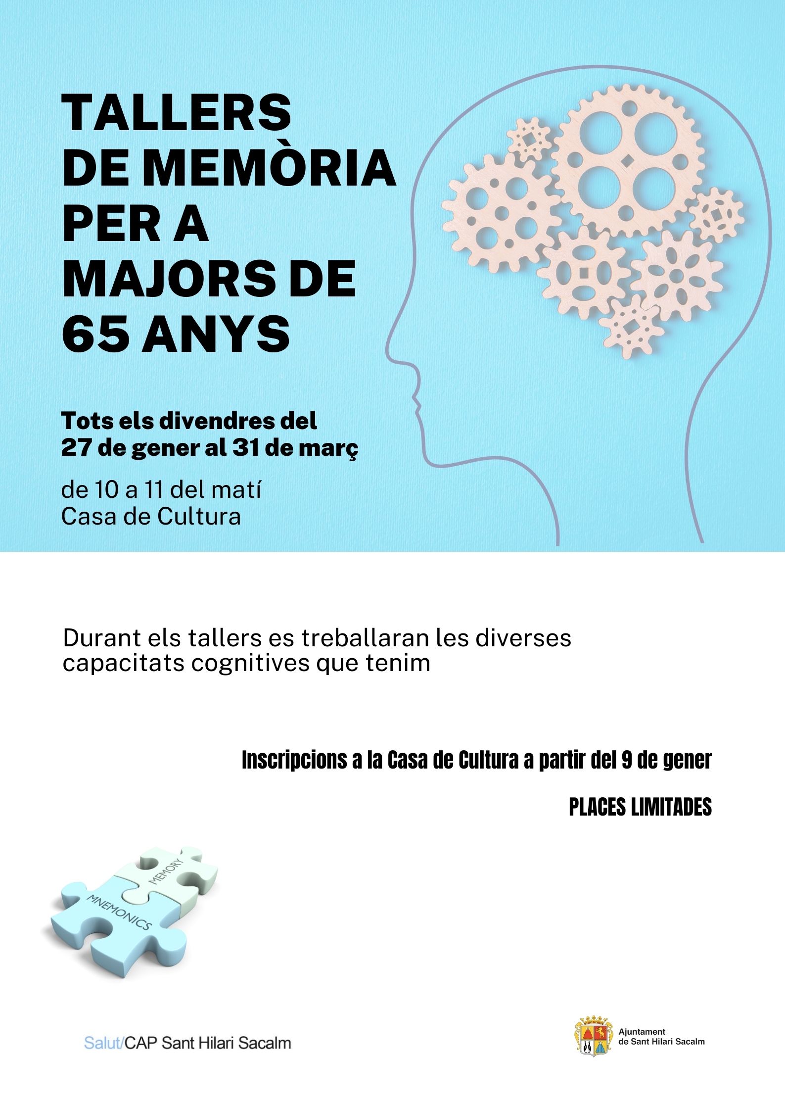 Pel que fa als tallers de memòria per a majors de 65 anys es faran els divendres a partir del 27 de gener de 10 a 11 del matí. Les places són limitades i cal fer la inscripció a la Casa de Cultura